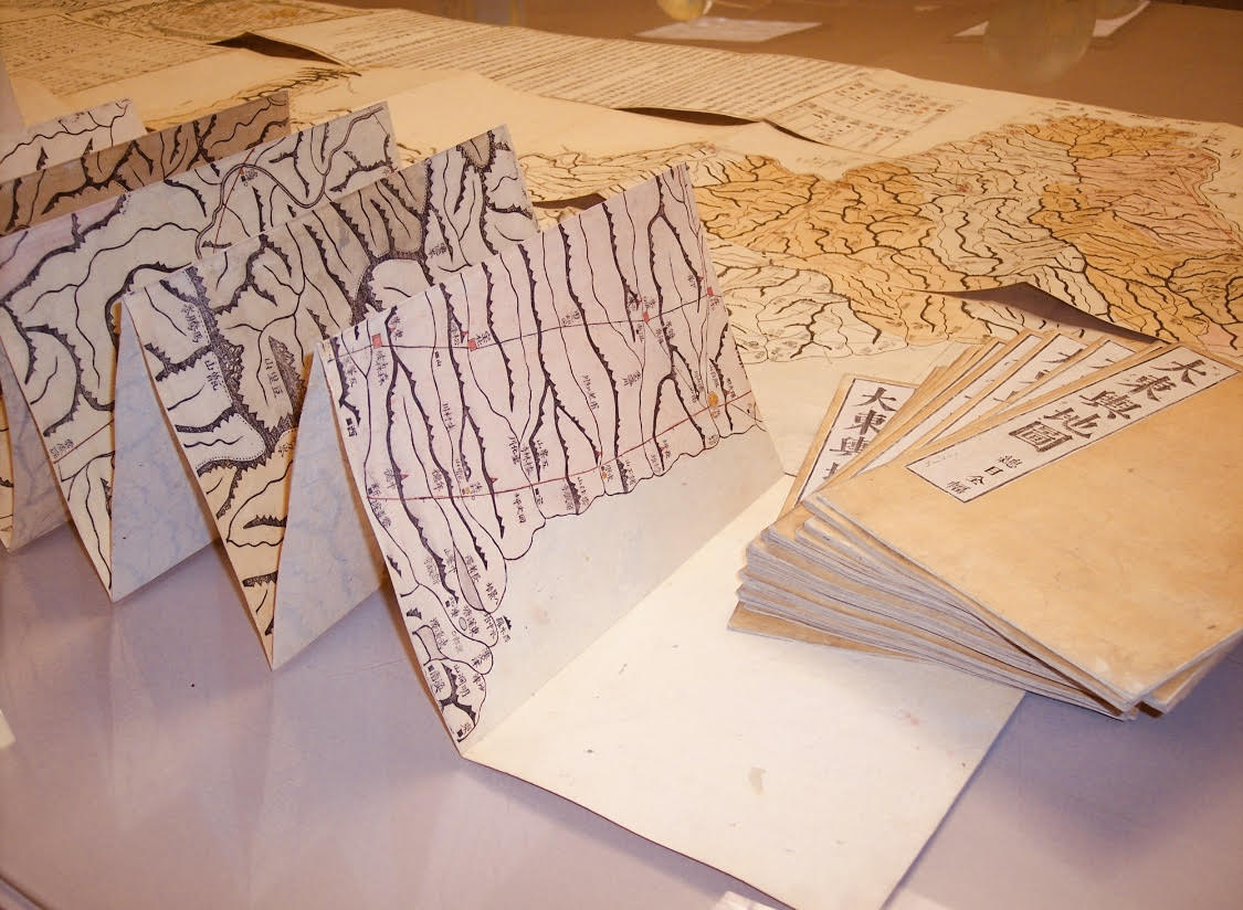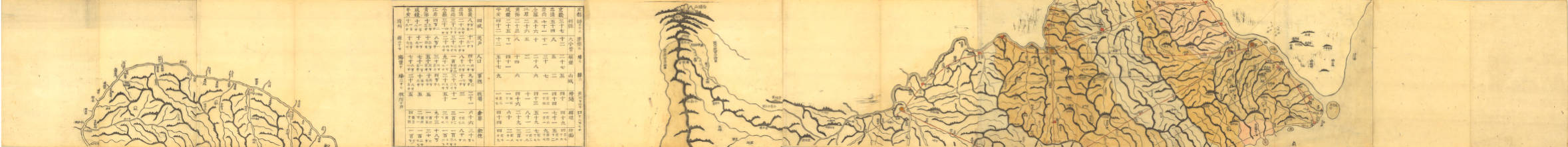 한 첩의 크기: 높이 30cm x 넓이 360cm 각 첩은 아코디언처럼 접었다 폈다 할 수 있는 절첩식(折帖式) 지도이다.